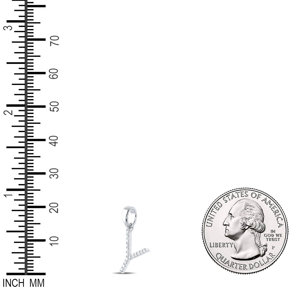 0.12 Ctw Natural Diamond Block Initial Letter Y Pendant in 10k White Gold