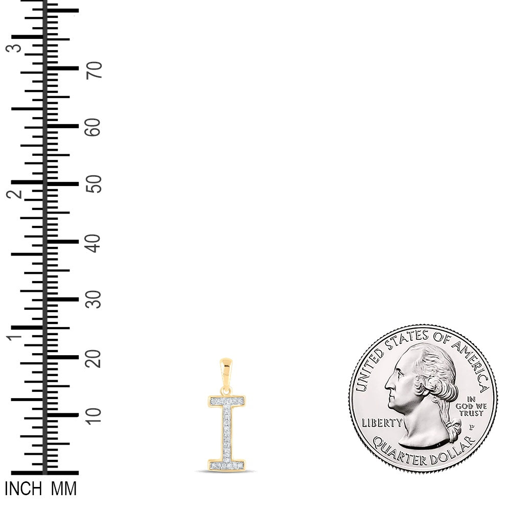 0.06 Ctw Natural Diamond Block Initial Letter I Pendant in 10k Yellow Gold