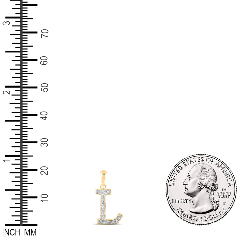 0.07 Ctw Natural Diamond Block Initial Letter L Pendant in 10k Yellow Gold