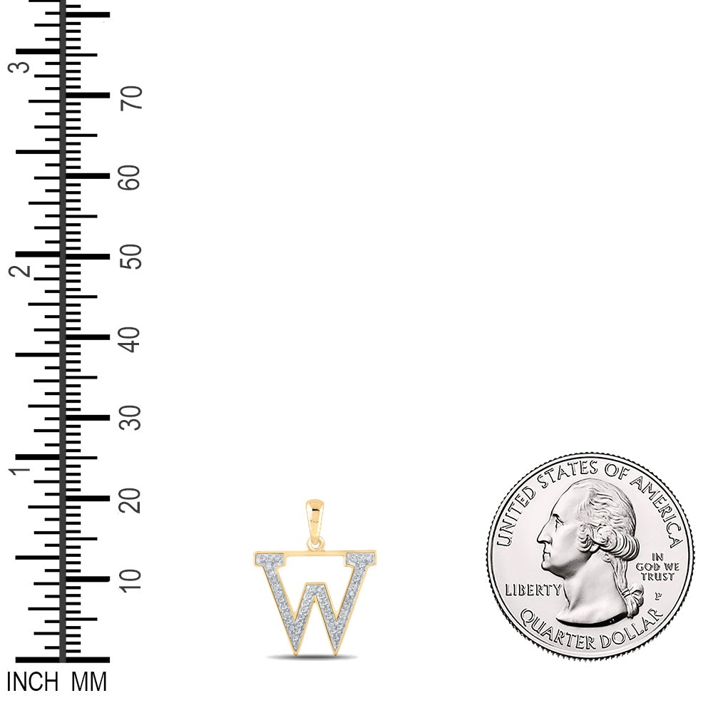 0.08 Ctw Natural Diamond Block Initial Letter W Pendant in 10k Yellow Gold
