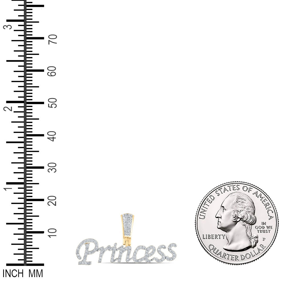 0.34 Ctw Natural Diamond Princess Name Plate Pendant in 10k Yellow Gold