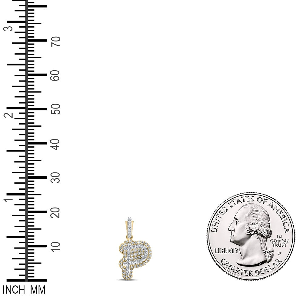 0.2 Ctw Natural Diamond Hiphop Initial Letter P Pendant in 10k Yellow Gold