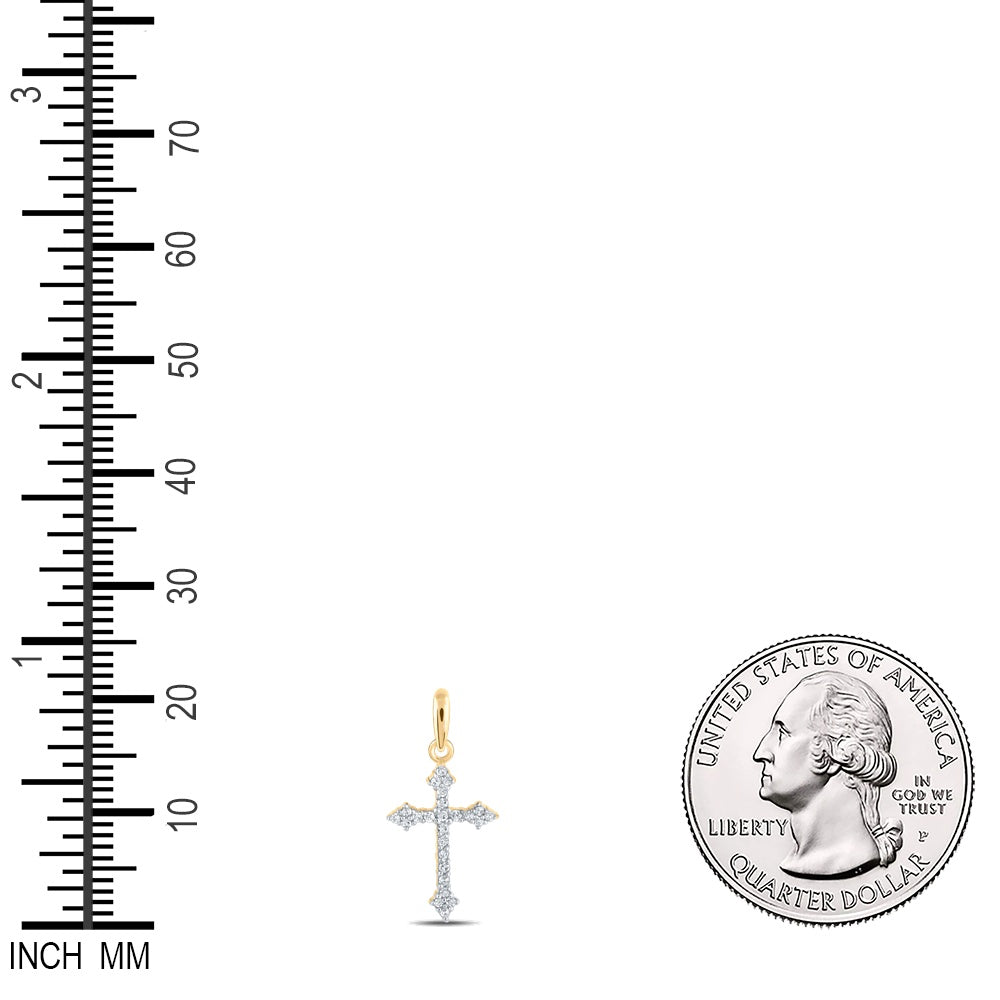 0.11 Ctw Natural Diamond Cross Religious Pendant in 10k Yellow Gold