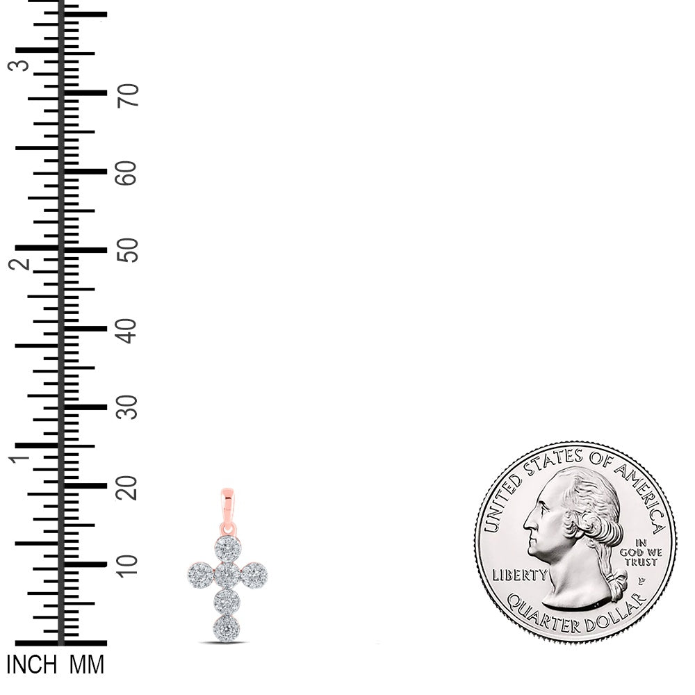 0.27 Ctw Natural Diamond Flower Cross Pendant in 10k Rose Gold