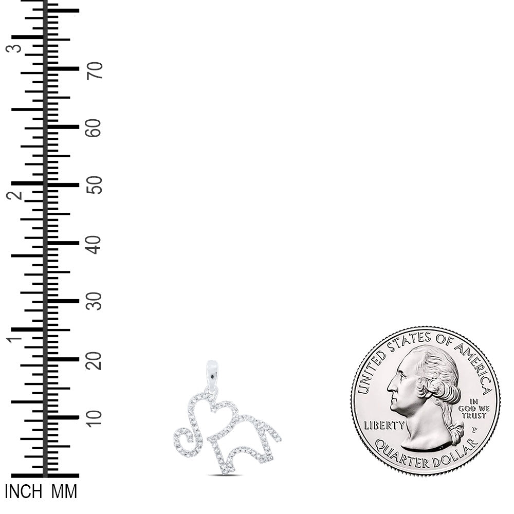 0.2 Ctw Natural Diamond Heart Elephant Gift Pendant in 10k White Gold
