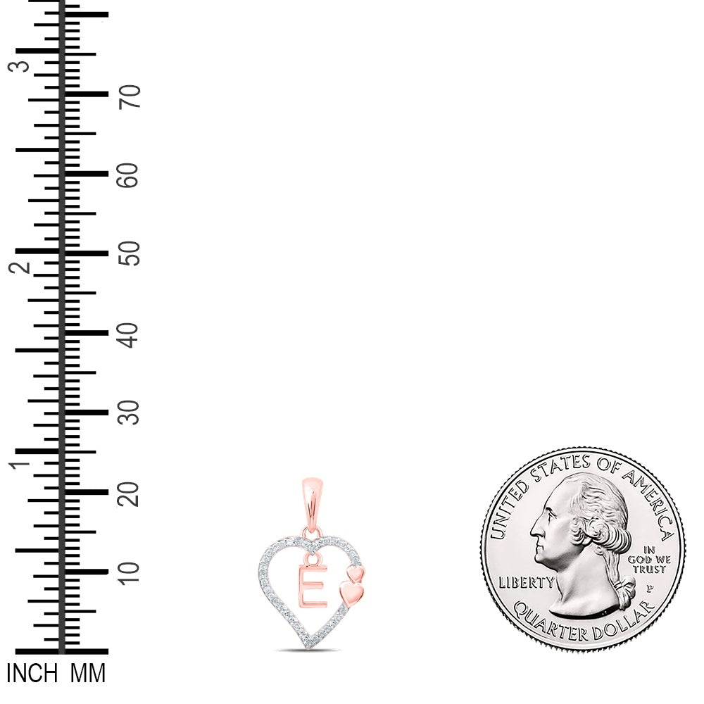 0.1 Ctw Natural Diamond Heart Dangle Initial Letter E Pendant in 10k Rose Gold