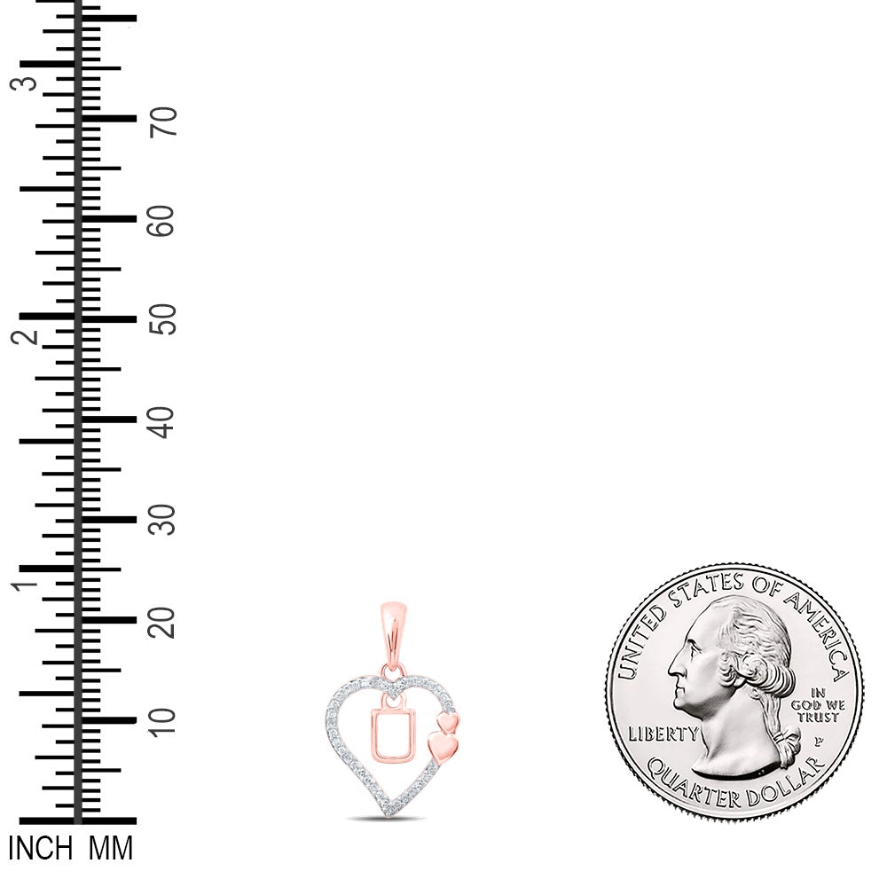 0.1 Ctw Natural Diamond Heart Dangle Initial Letter U Pendant in 10k Rose Gold