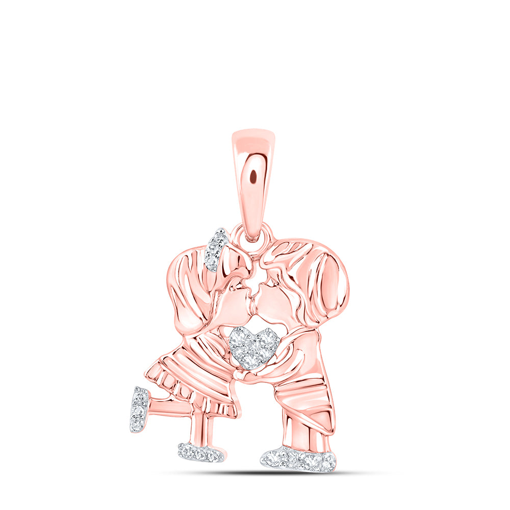 0.06 Ctw Natural Diamond Kiss Couple Heart Pendant in 10k Rose Gold
