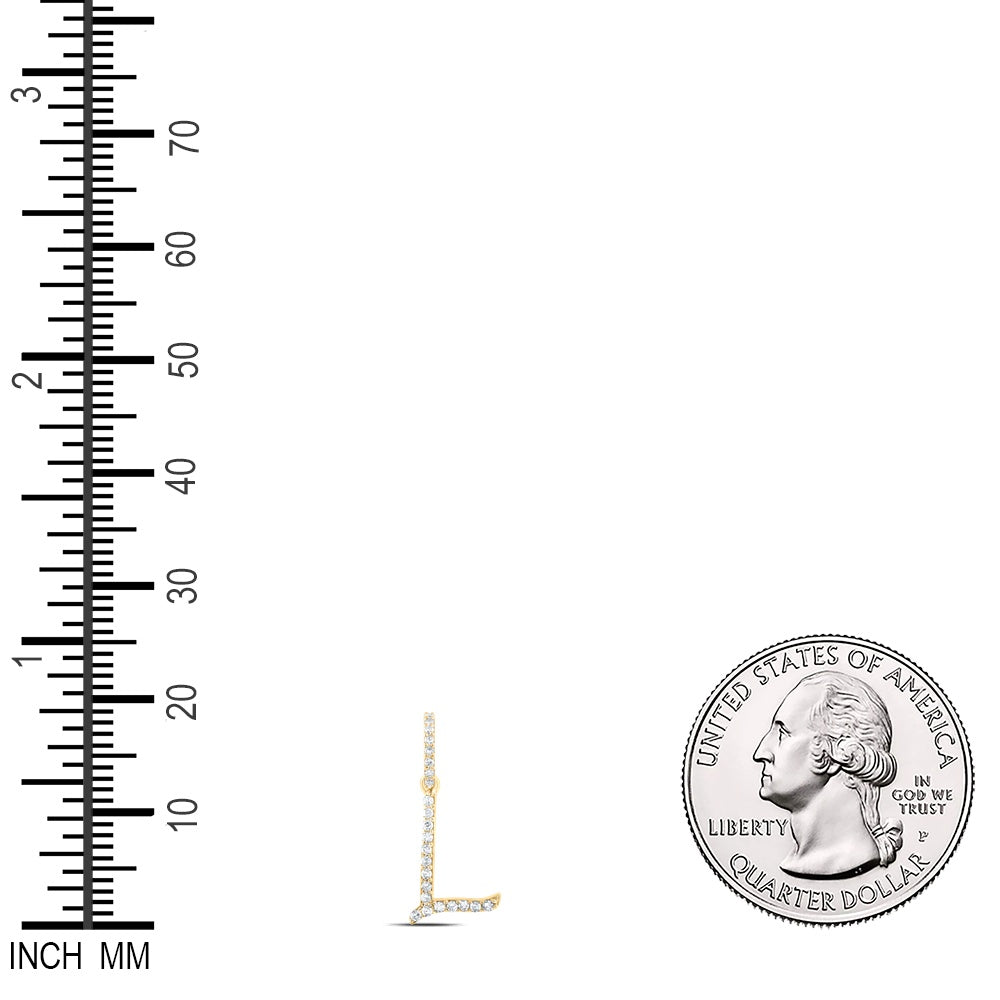 0.1 Ctw Natural Diamond Initial Letter L Pendant in 10k Yellow Gold