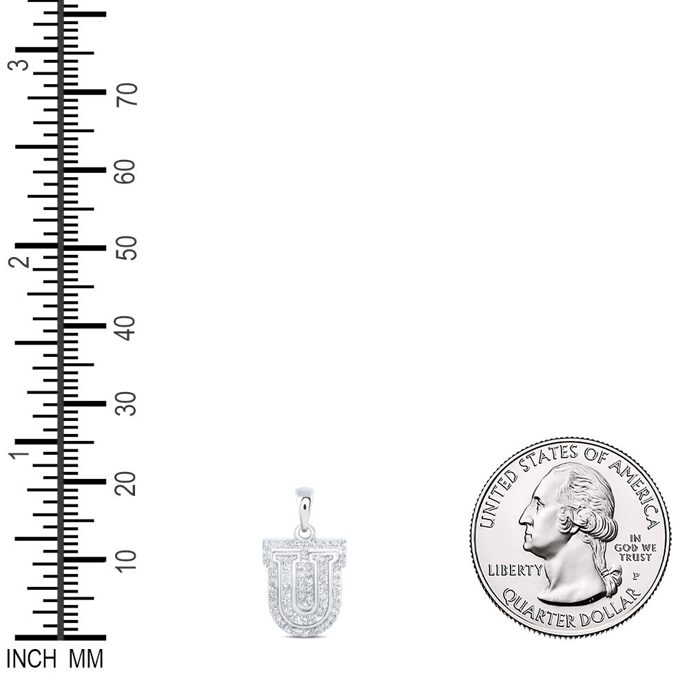0.22 Ctw Natural Diamond Hiphop Block Initial Letter U Pendant in 10k White Gold