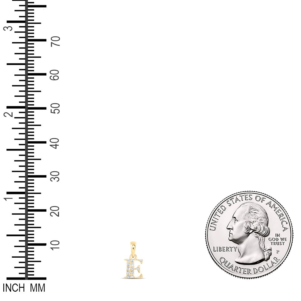 0.06 Ctw Natural Diamond Tiny Block Initial Letter E Pendant in 10k Yellow Gold