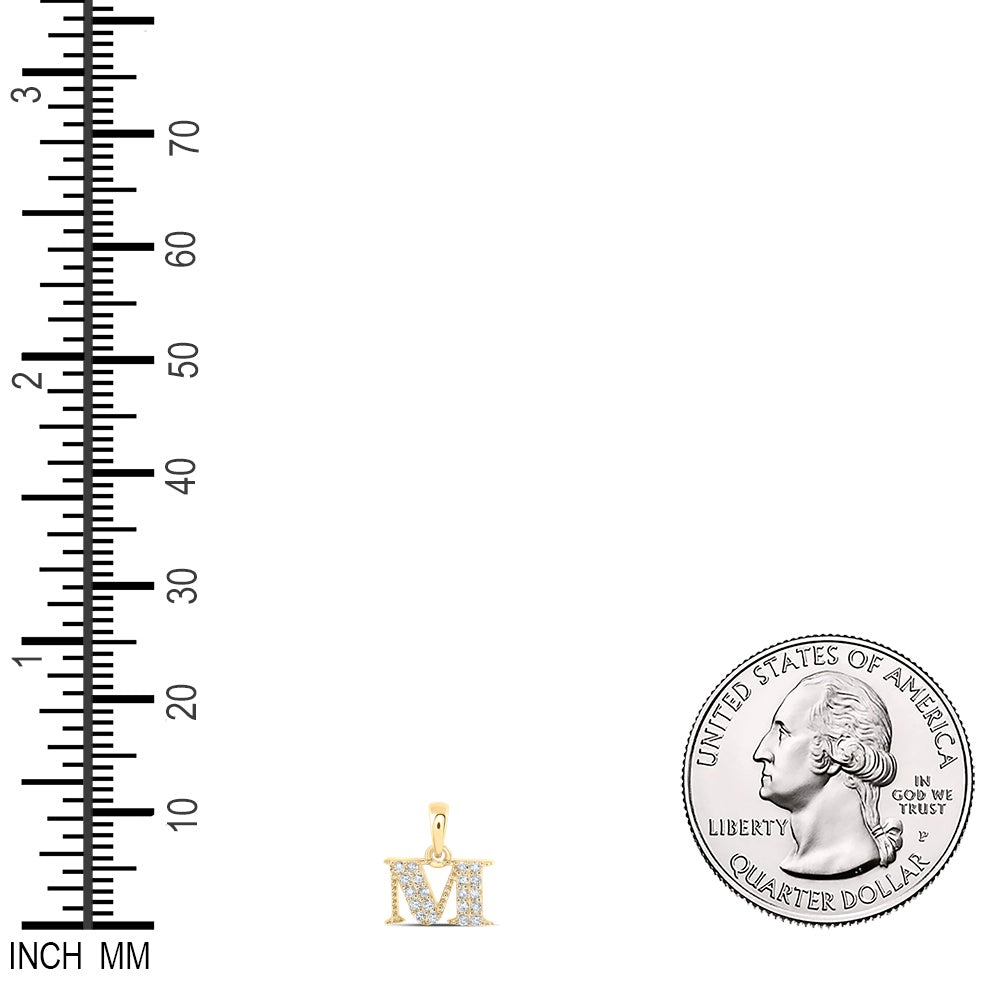 0.11 Ctw Natural Diamond Tiny Block Initial Letter M Pendant in 10k Yellow Gold