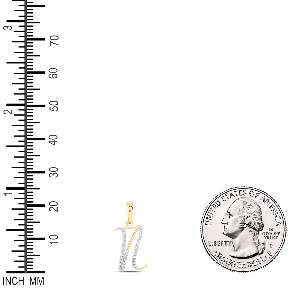 0.11 Ctw Natural Diamond Designer Initial Letter N Pendant in 10k Yellow Gold