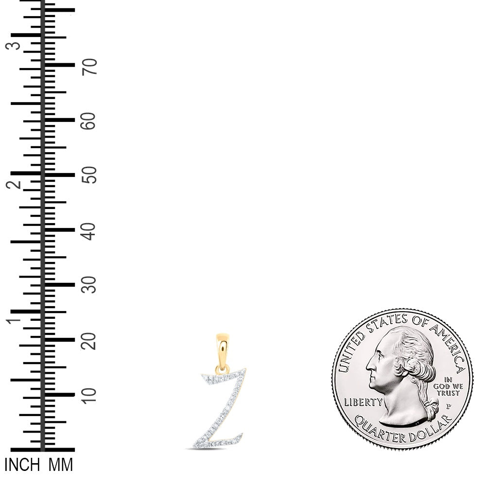0.1 Ctw Natural Diamond Designer Initial Letter Z Pendant in 10k Yellow Gold