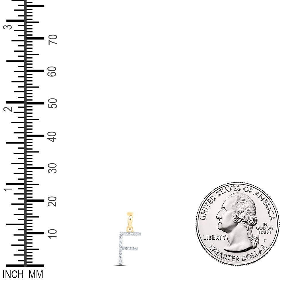 0.07 Ctw Natural Diamond Thin Initial Letter F Pendant in 10k Yellow Gold