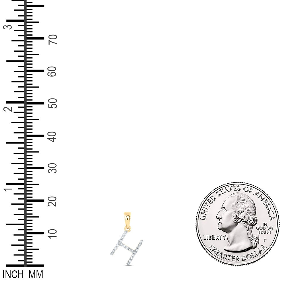 0.09 Ctw Natural Diamond Thin Initial Letter H Pendant in 10k Yellow Gold