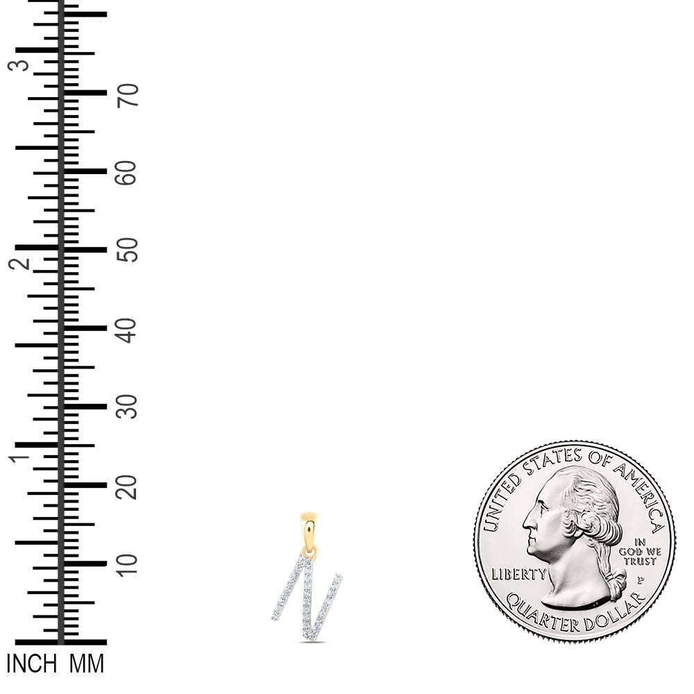 0.11 Ctw Natural Diamond Thin Initial Letter N Pendant in 10k Yellow Gold