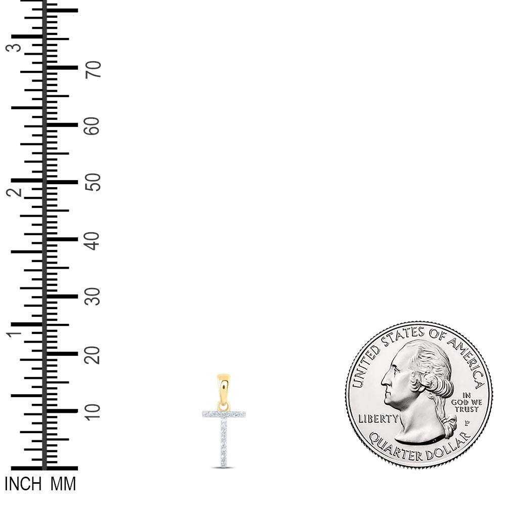 0.06 Ctw Natural Diamond Thin Initial Letter T Pendant in 10k Yellow Gold