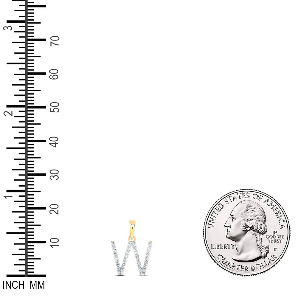 0.14 Ctw Natural Diamond Thin Initial Letter W Pendant in 10k Yellow Gold