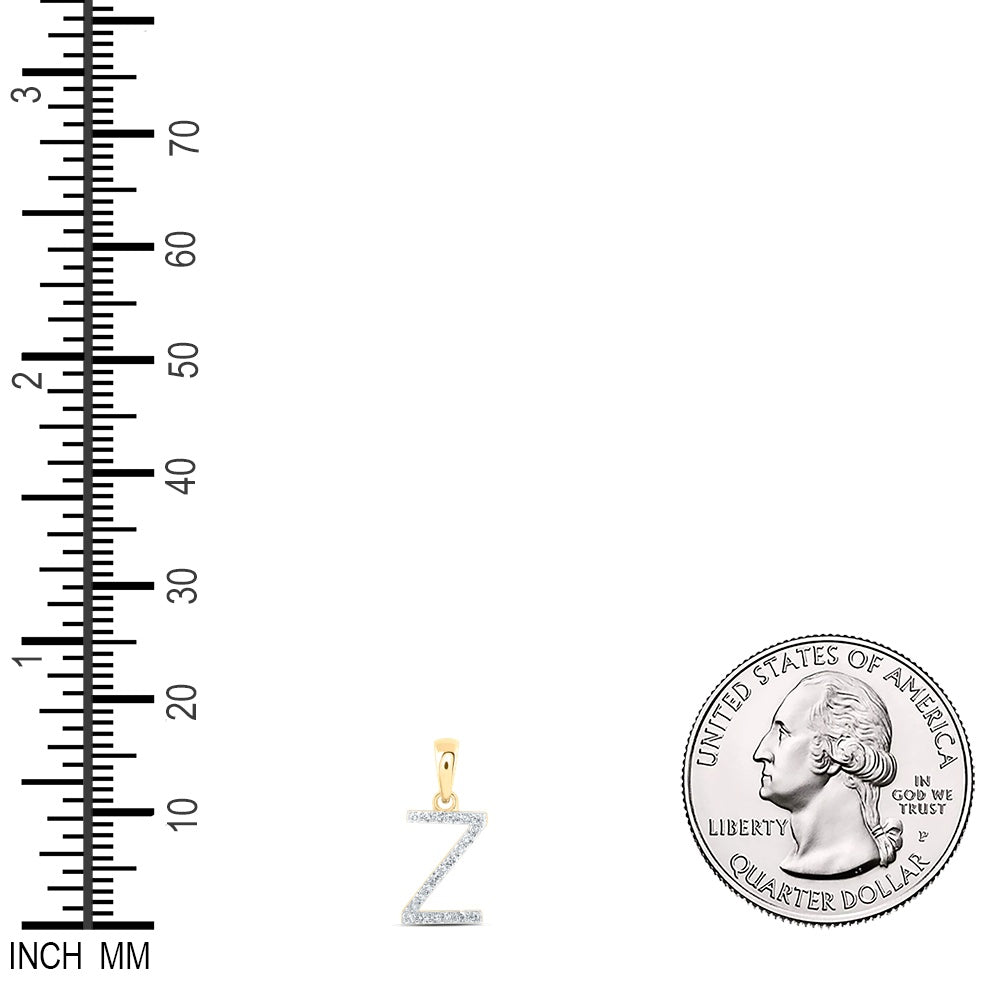 0.09 Ctw Natural Diamond Thin Initial Letter Z Pendant in 10k Yellow Gold