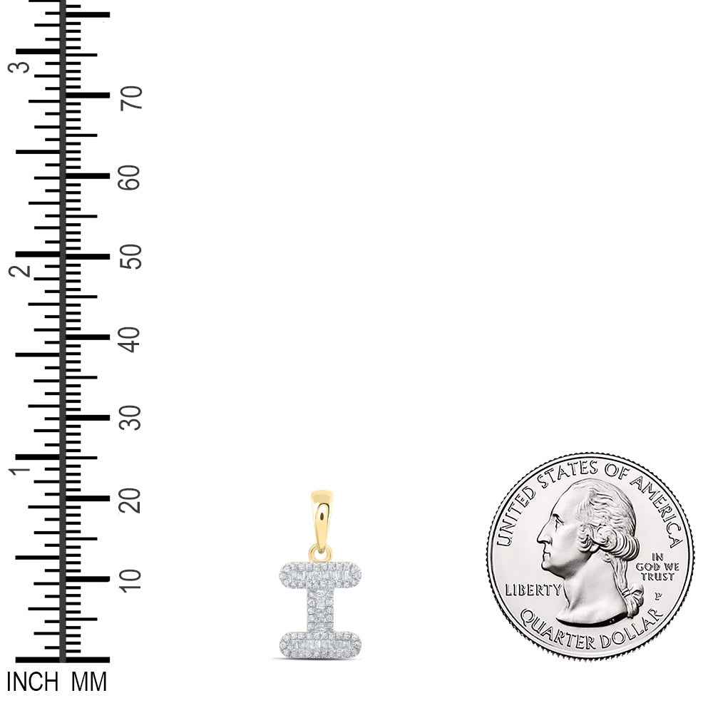 0.3 Ctw Natural Diamond Baguette Hiphop Initial Letter I Pendant in 10k Yellow Gold