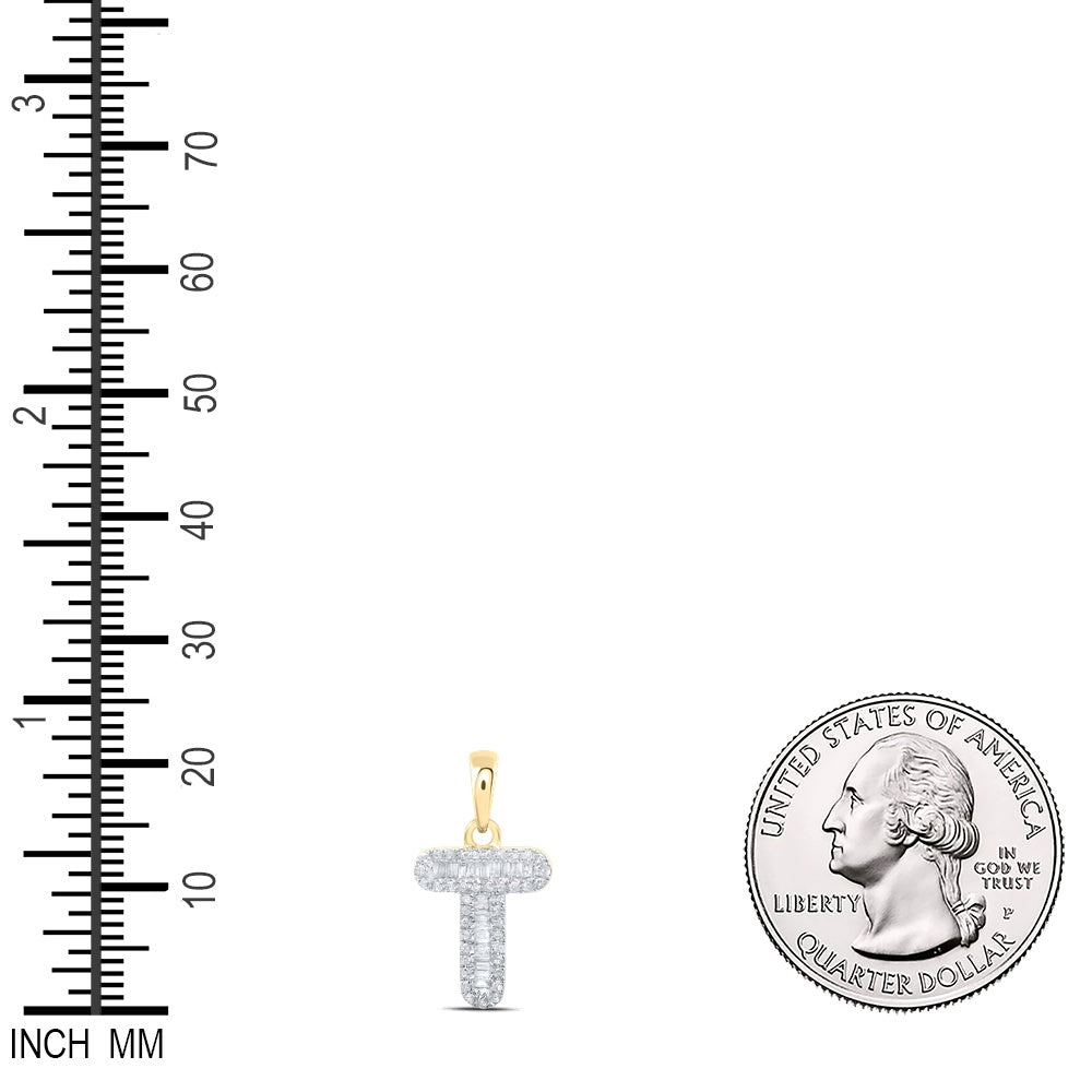 0.23 Ctw Natural Diamond Baguette Hiphop Initial Letter T Pendant in 10k Yellow Gold