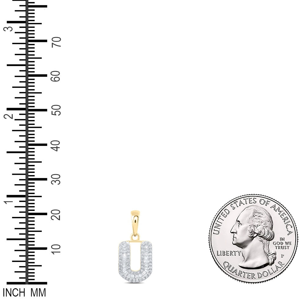0.31 Ctw Natural Diamond Baguette Hiphop Initial Letter U Pendant in 10k Yellow Gold