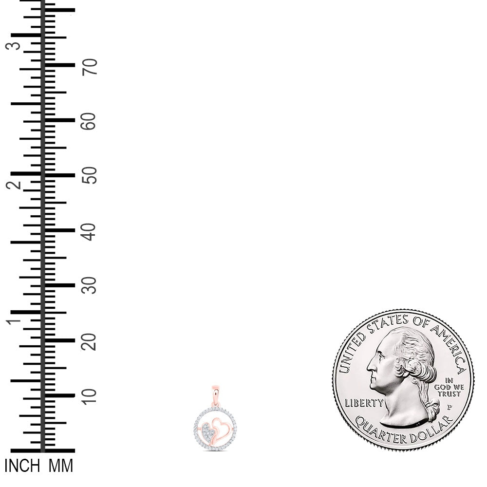 0.14 Ctw Natural Diamond Double Heart Circle Pendant in 10k Rose Gold
