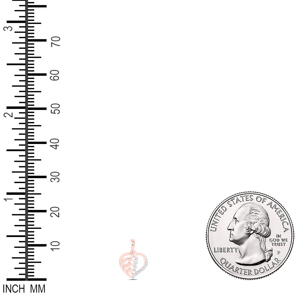 0.07 Ctw Natural Diamond Open Heart Wave Pendant in 10k Rose Gold