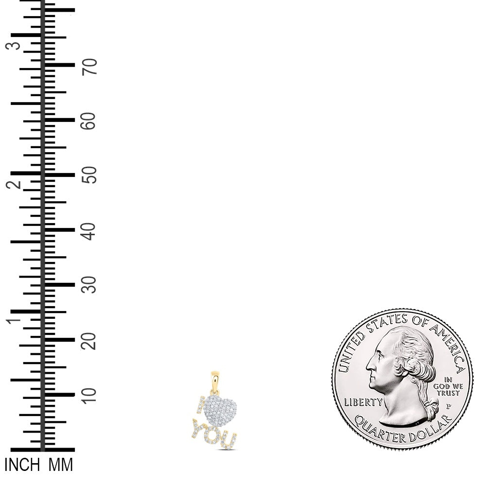 0.29 Ctw Natural Diamond I Love You Heart Pendant in 10k Yellow Gold