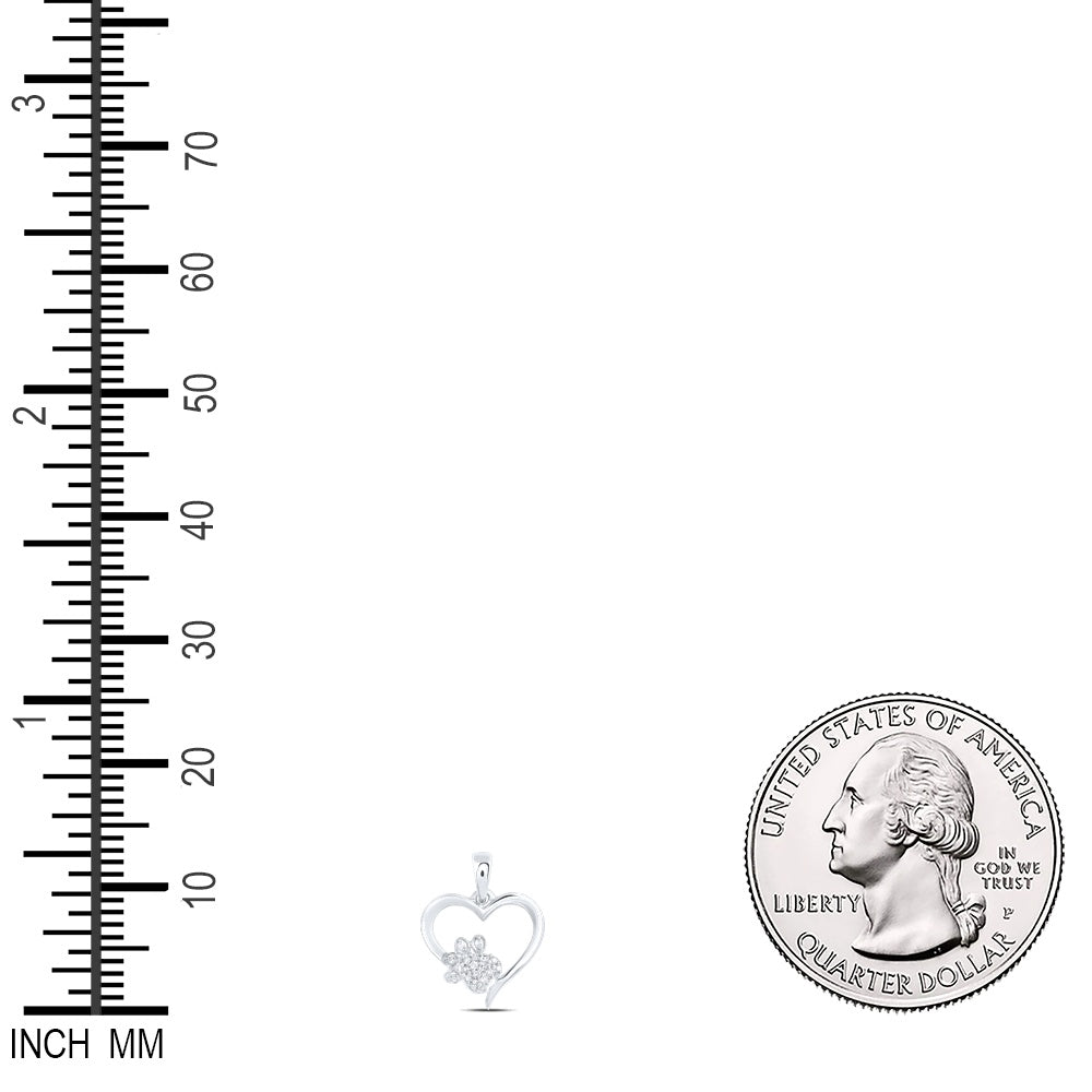 0.06 Ctw Natural Diamond Open Heart Paw Pendant in Sterling Silver