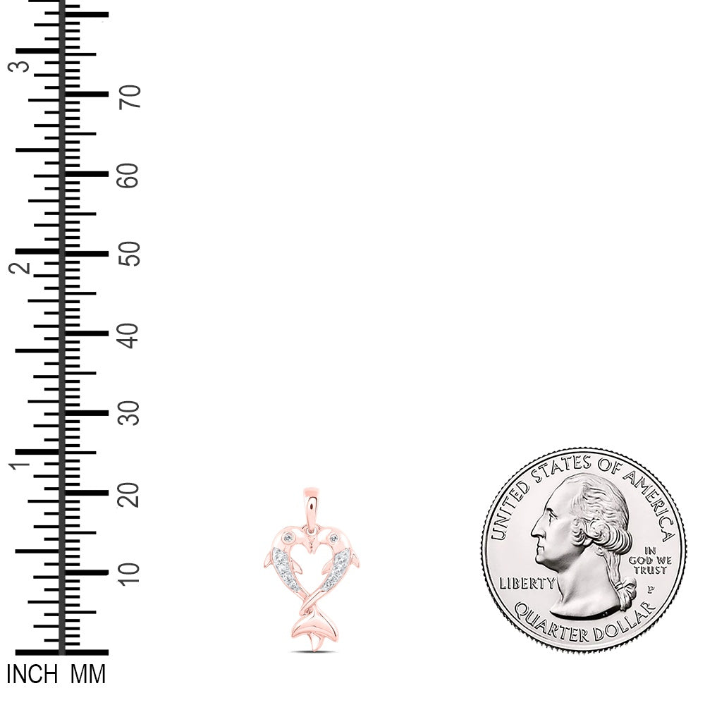 0.05 Ctw Natural Diamond Heart Dolphin Pendant in 10k Rose Gold