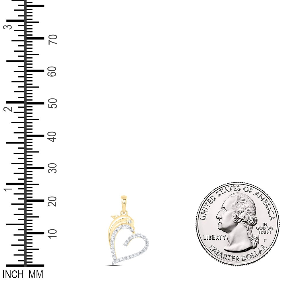 0.21 Ctw Natural Diamond Open Heart Dolphin Pendant in 10k Yellow Gold
