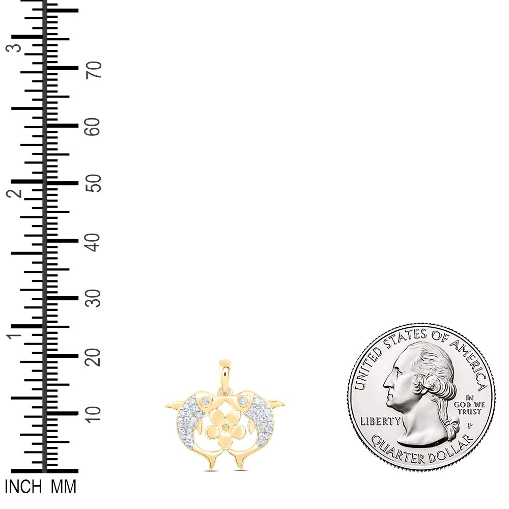 0.15 Ctw Natural Diamond Heart Shape Dolphin Kiss Flower Pendant in 10k Yellow Gold
