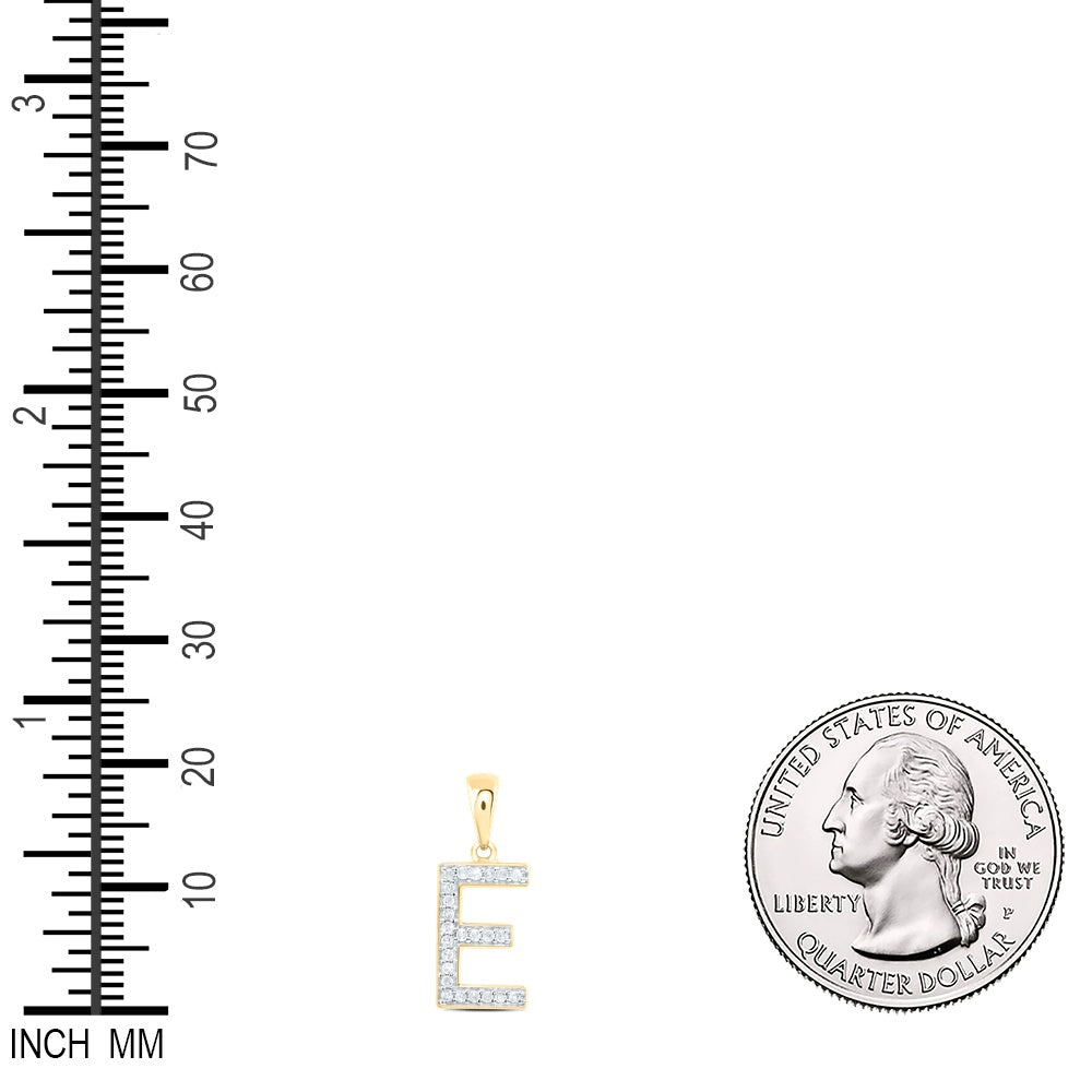 0.1 Ctw Natural Diamond Simple Initial Letter E Pendant in 10k Yellow Gold