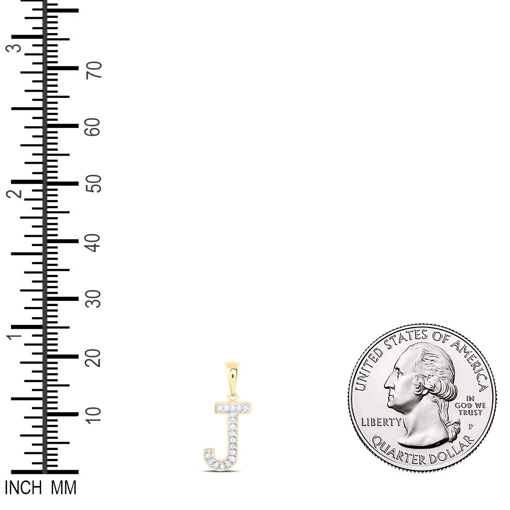 0.07 Ctw Natural Diamond Simple Initial Letter J Pendant in 10k Yellow Gold