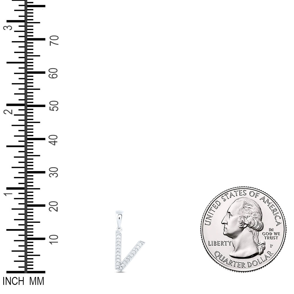 0.08 Ctw Natural Diamond Simple Initial Letter V Pendant in 10k White Gold