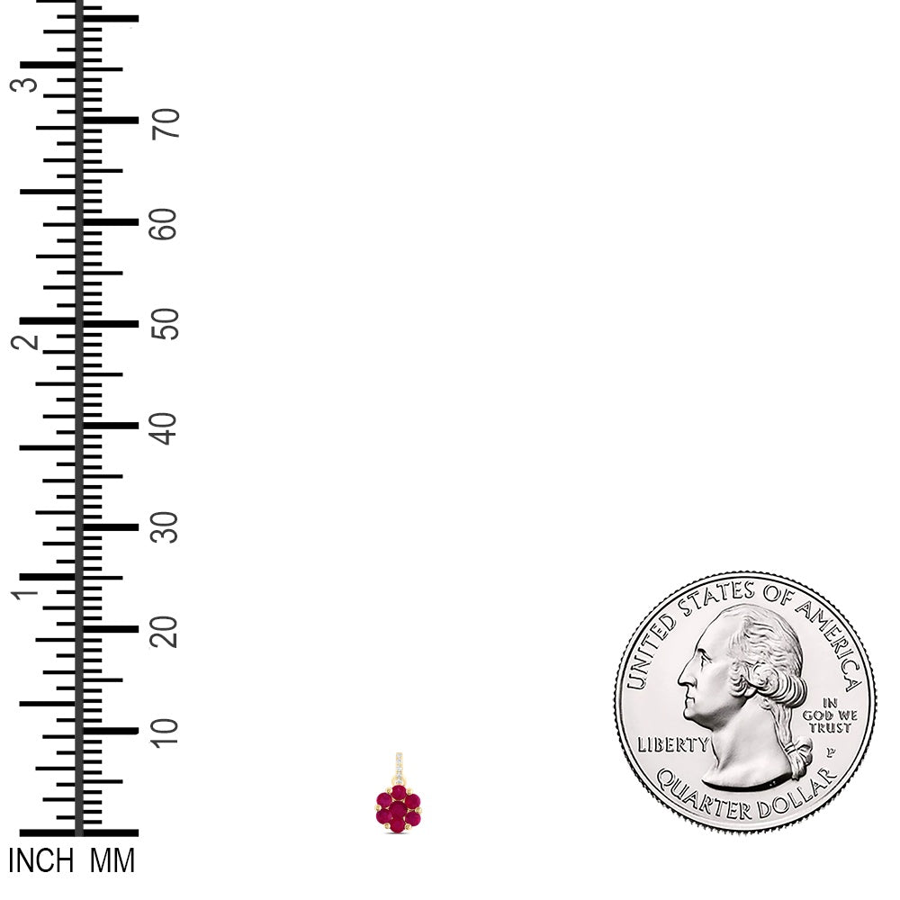 0.67 Ctw Natural Diamond Flower Red Pendant in 14k Yellow Gold