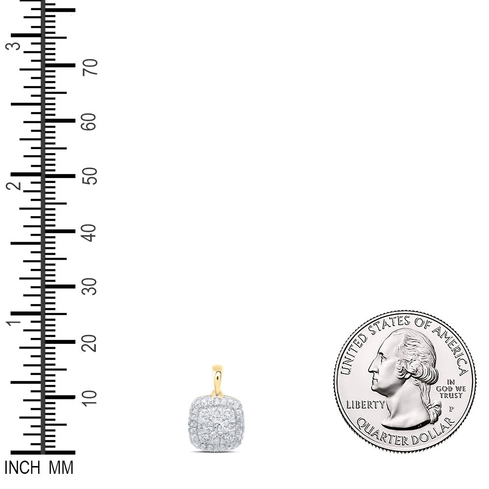 0.53 Ctw Natural Diamond Round Edges Square Shaped Pendant in 14k Yellow Gold