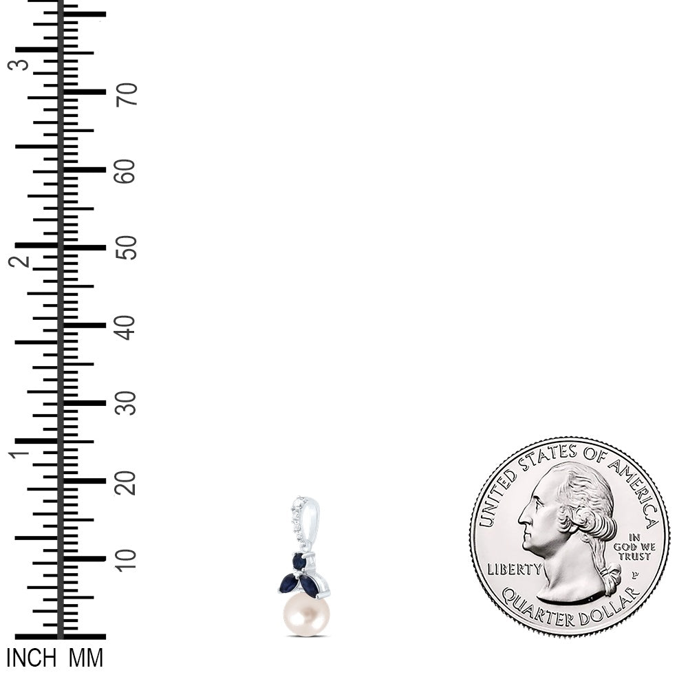 1.89 Ctw Natural Diamond Black Diamond Pearl Pendant in 14k White Gold