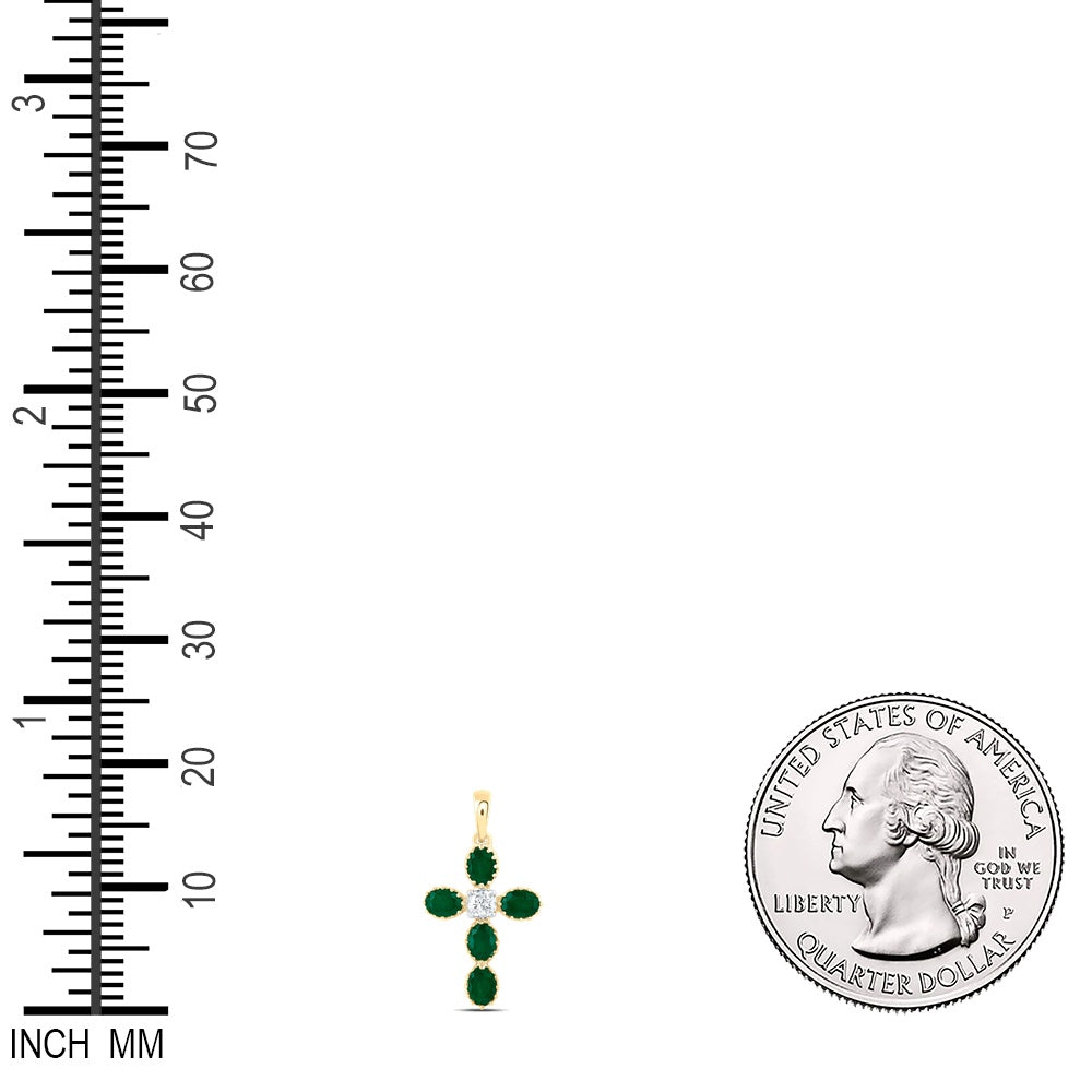 1.02 Ctw Natural Diamond Green Cross Religious Pendant in 14k Yellow Gold