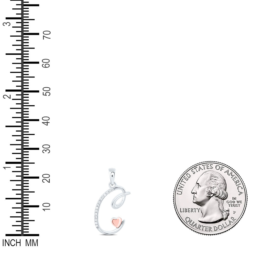 0.06 Ctw Natural Diamond Heart Cursive Initial Letter C Pendant in Sterling Silver