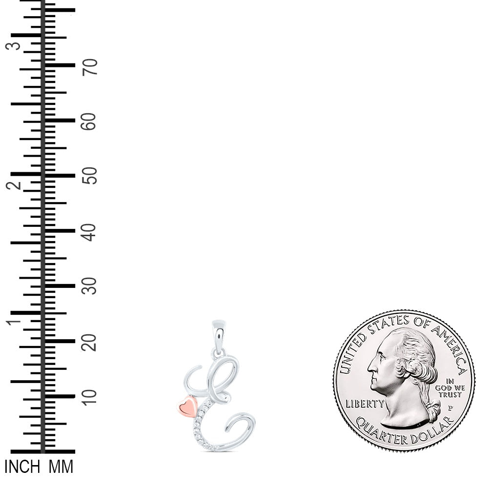 0.04 Ctw Natural Diamond Heart Intial Letter E Pendant in Sterling Silver