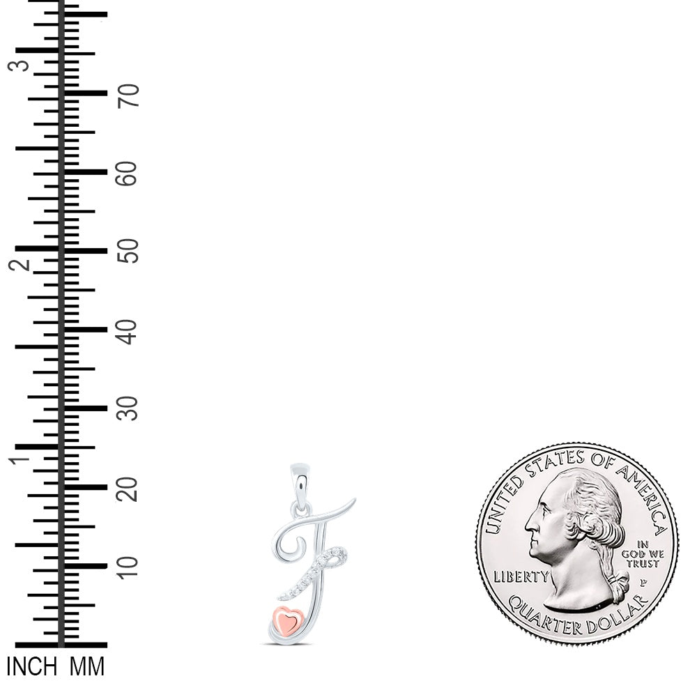 0.04 Ctw Natural Diamond Heart Cursive Initial Letter F Pendant in Sterling Silver