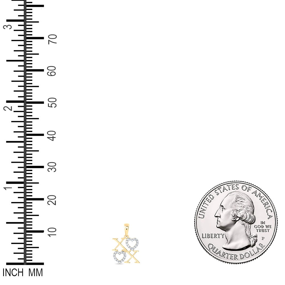 0.13 Ctw Natural Diamond X & Heart Love Pendant in 10k Yellow Gold
