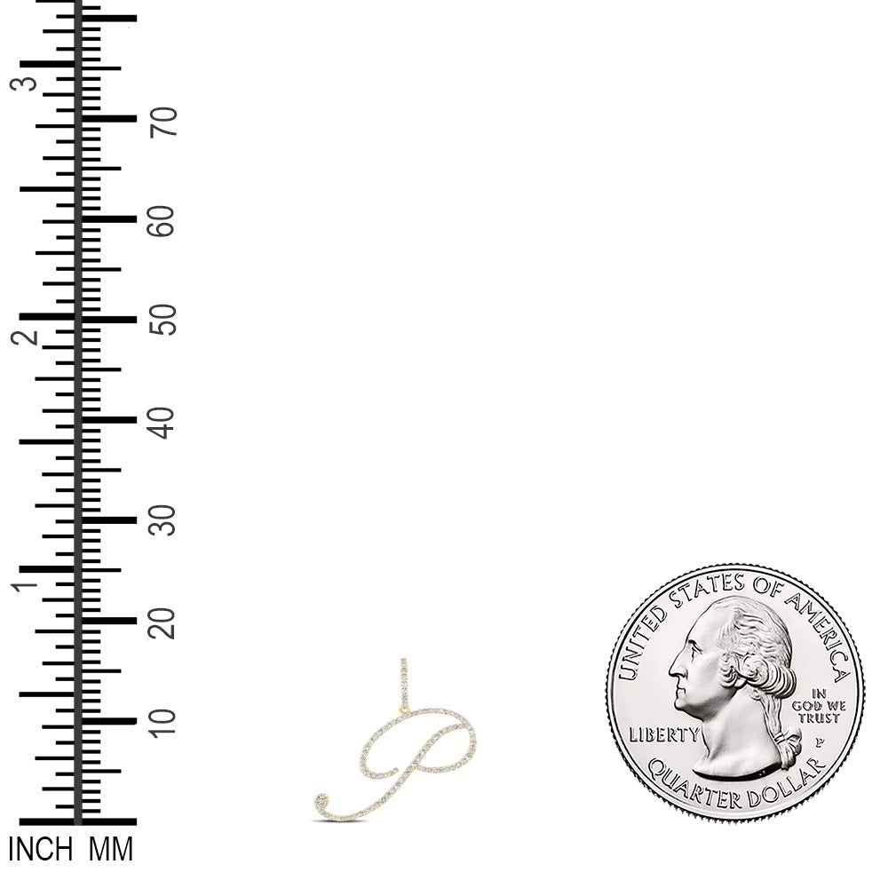 0.51 Ctw Natural Diamond Cursive Initial Letter P Pendant in 14k Yellow Gold