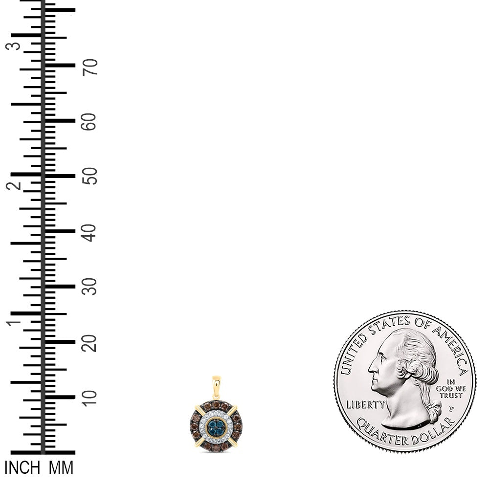 0.59 Ctw Natural Diamond Brown Center Blue Round Shape Pendant in 10k Yellow Gold