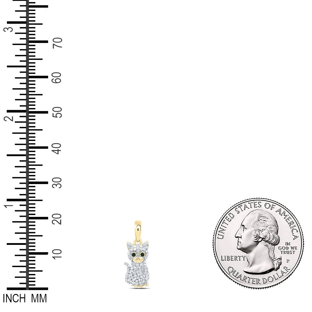 0.23 Ctw Natural Diamond Black Eyes Cat Pendant in 10k Yellow Gold