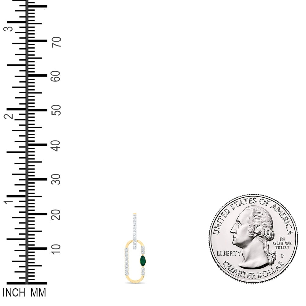 0.11 Ctw Natural Diamond Green Paperclip Link Dangle Pendant in 14k Yellow Gold