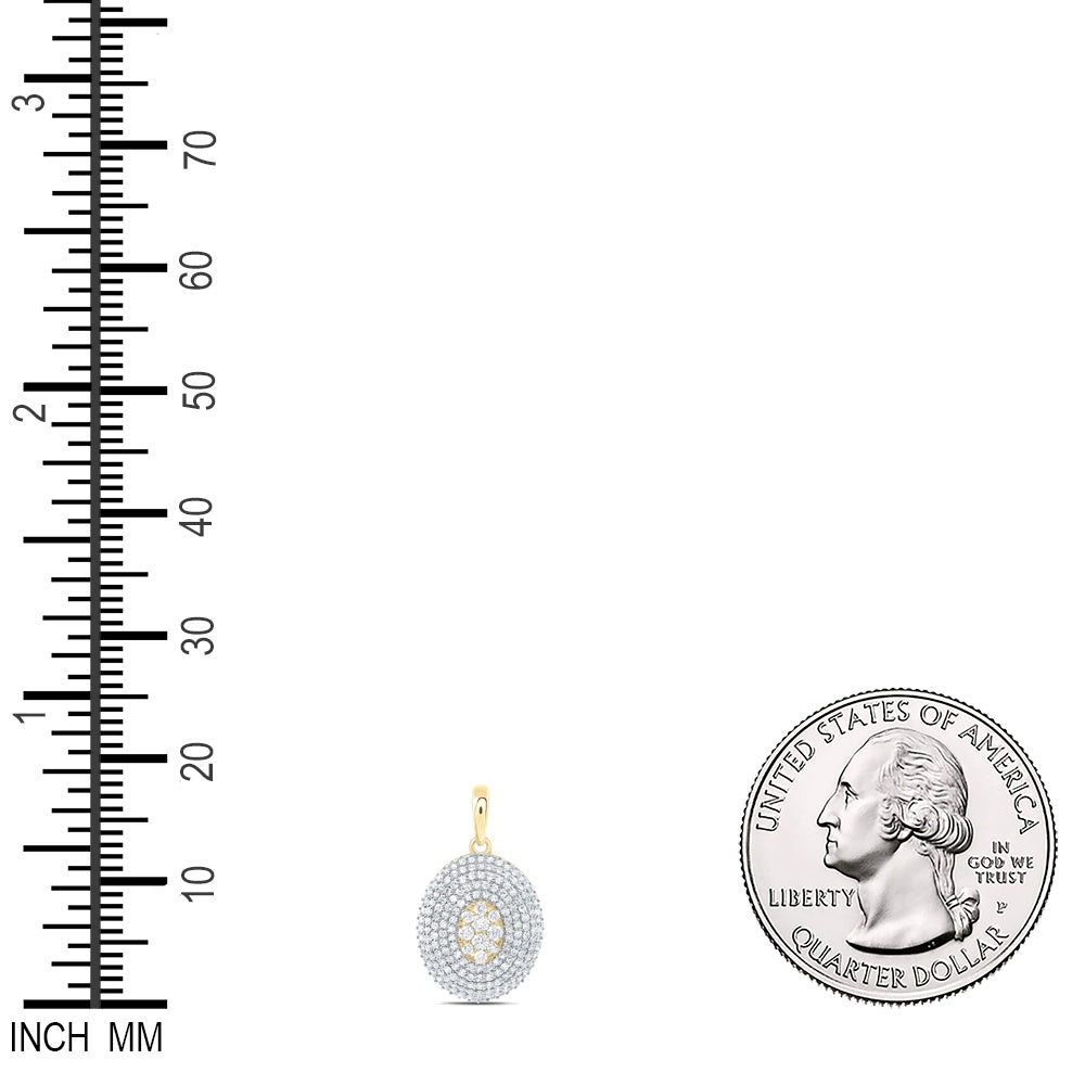 0.88 Ctw Natural Diamond Cluster Oval Shaped Pendant in 10k Yellow Gold
